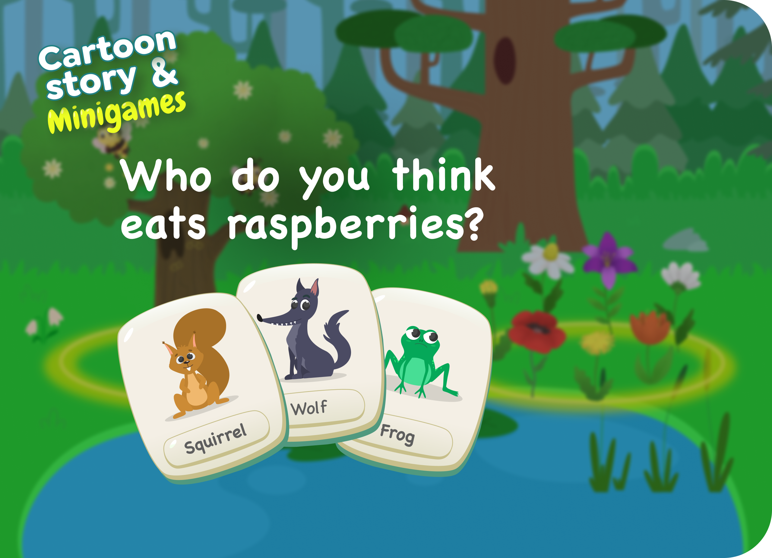 The "Cartoon Story" is an interactive game featuring bedtime stories, fairy tales, moral stories, and engaging learning mini-games tailored for boys and girls aged 1-9 years.